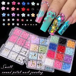 12 Grids Mixed Color 3D Resin Flower Caviar Beads Summer Nail Art Decorations Acrylic Flowers Pearl Steel Ball DIY Nail Charms
