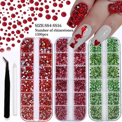 SS4-SS16 Nail Jewelry Set 12 Grid Glass Flatback Rhinestones With Pen and Tweezers Crystal Ab Diamond Nail Rhinestones Wholesale