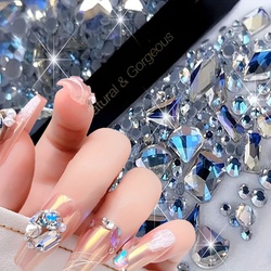 Aurora Drill AB Color Flat Bottom Champagne Nail Decoration Special-shaped Diamond Mixed Set